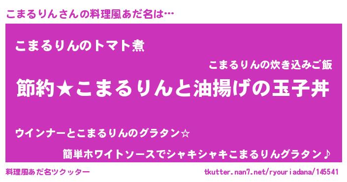 | 男性向けラノベタイトル風あだ名 | 『こまるりんの憂鬱』 |