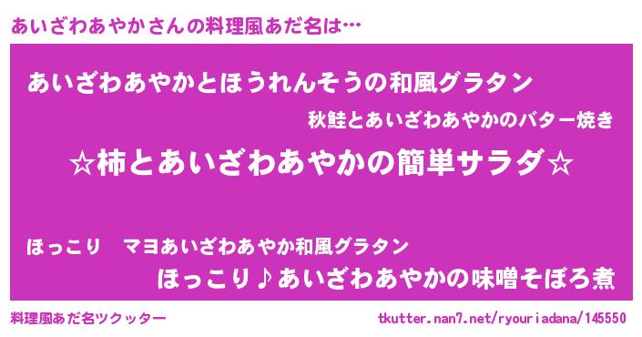 | ヘコむあだ名 | 『あいもー』『あいざわあやか(震え声)』 |