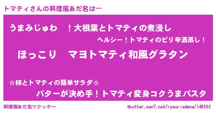 | ヒーロー風カッコイイあだ名 | 『仮面トマダー』『ウルトラトマティマン』 |