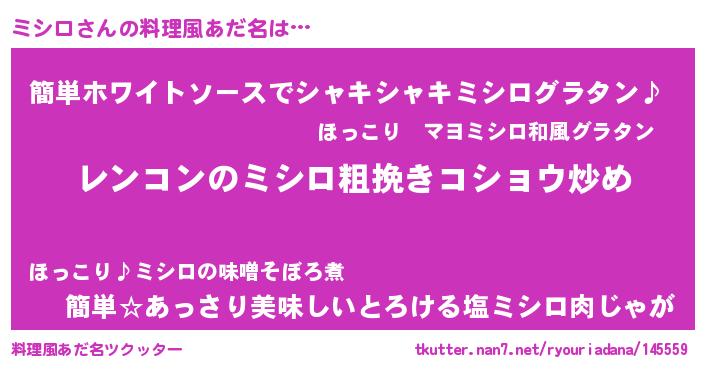| 男性向けラノベタイトル風あだ名 | 『魔法科高校のミシロ』『ミシロの憂鬱』 |