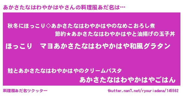 | 意味不明あだ名 | 『住所不定無職あかさたなはわやかはや(62歳)』 |