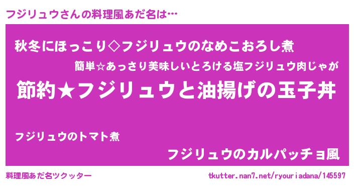 | 男性向けラノベタイトル風あだ名 | 『フジリュウの憂鬱』 |