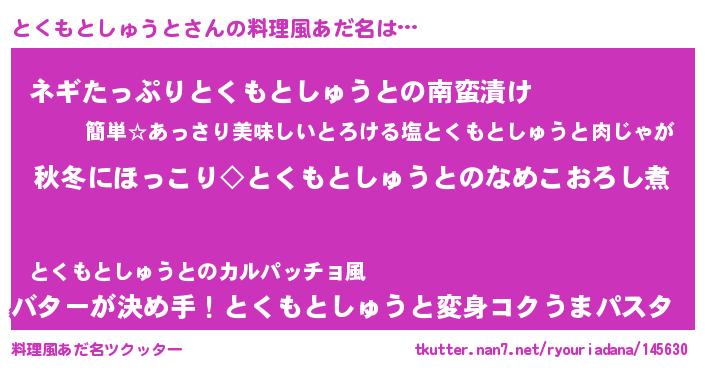 | 男性向けラノベタイトル風あだ名 | 『とくもとしゅうとに滅ぼされるだけの簡単なお仕事です』 |