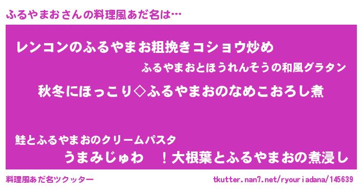 | 男性向けラノベタイトル風あだ名 | 『ふるやまおに滅ぼされるだけの簡単なお仕事です』 |