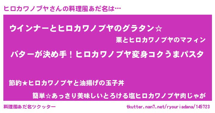 | 男性向けラノベタイトル風あだ名 | 『ノーゲーム・ノーヒロカワノブヤ』 |