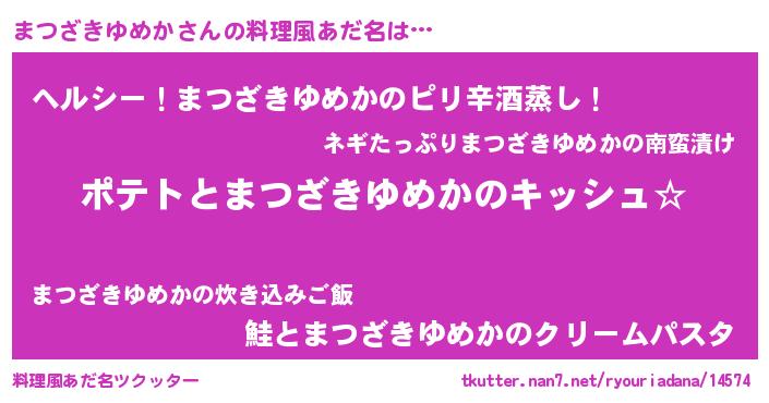 | 男性向けラノベタイトル風あだ名 | 『まつざきゆめかの嫁は女の子じゃないと思った?』 |