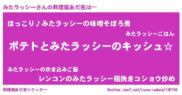 | 意味不明あだ名 | 『とにかく怪しいみたラッシー』 |