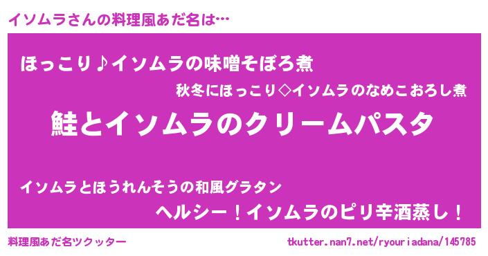 | 女子向けラノベタイトル風あだ名 | 『死神イソムラの再婚』『闇のイソムラ』 |