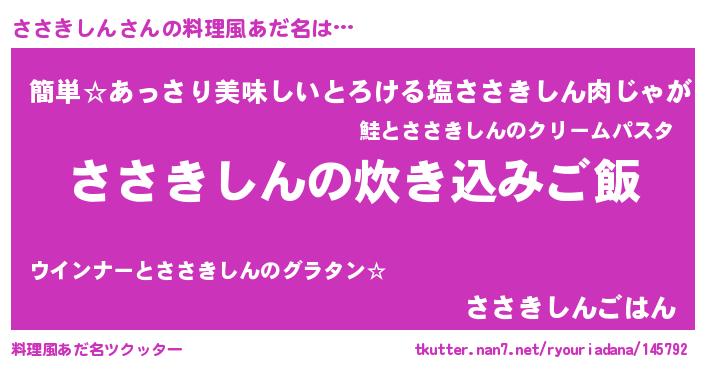 | 男性向けラノベタイトル風あだ名 | 『うちのささきしんが世界を掌握している!』 |