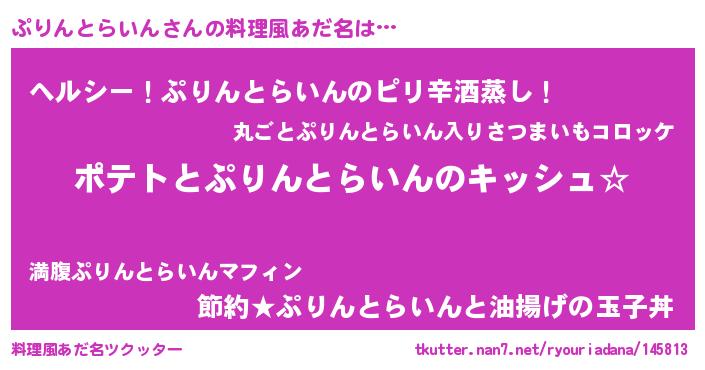 | 女子向けラノベタイトル風あだ名 | 『ぷりんとらいんの卵を拾いまして』 |