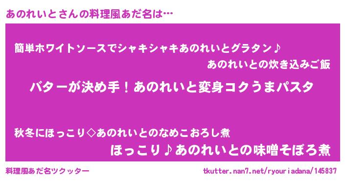 | ヘコむあだ名 | 『あのを』『あのふぇ~』『なまこ酢』 |