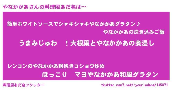 | 欧米人風あだ名 | 『やなかかあクリステル』 |