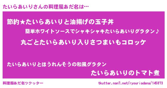 | 意味不明あだ名 | 『住所不定無職たいらあいり(3歳)』 |