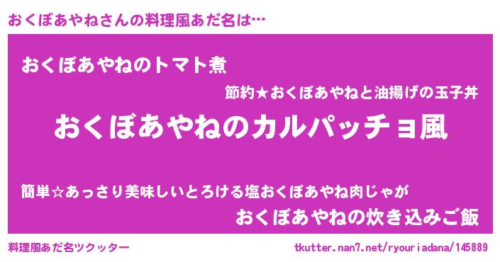 | 胡散臭い通販商品みたいなあだ名 | 『ハリウッド女優が絶賛した世界で10本だけ現存している希少なブランデー…その名も「おくぼあやね」』 |
