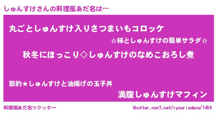 | 意味不明あだ名 | 『住所不定無職しゅんすけ(7歳)』 |