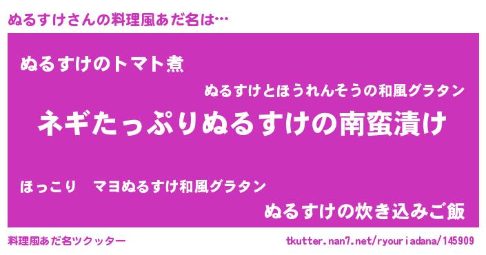 | ポケモン風あだ名 | 『ヌルチュウ』『ヌックウザ』 |