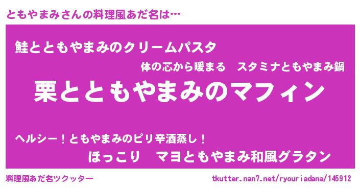 | ヘコむあだ名 | 『豆乳』『ともやまみ(遠い目)』 |