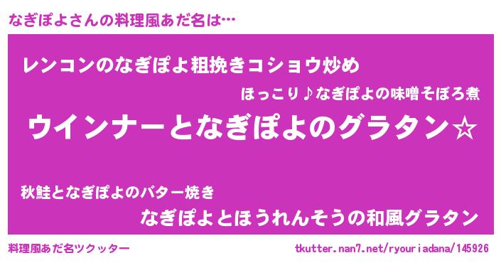 | 欧米人風あだ名 | 『なぎぽよクリステル』 |