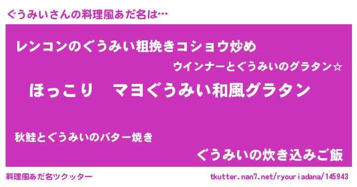 | 意味不明あだ名 | 『住所不定無職ぐうみい(50歳)』 |