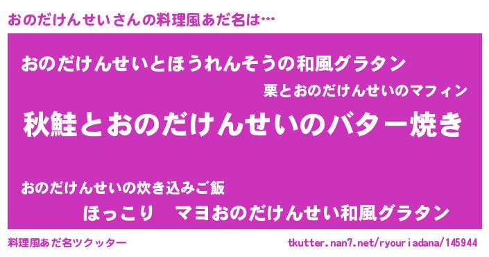 | 男性向けラノベタイトル風あだ名 | 『おのだけんせいという概念が存在しない退屈な世界 』 |
