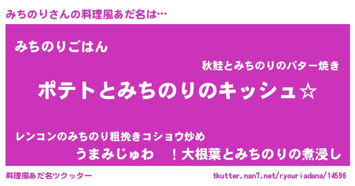 | 女子向けラノベタイトル風あだ名 | 『みちのりの卵を拾いまして』 |