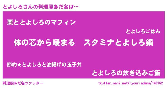 | ファンタジー風あだ名 | 『エターナルトヨシロー』『トヨフェル』 |