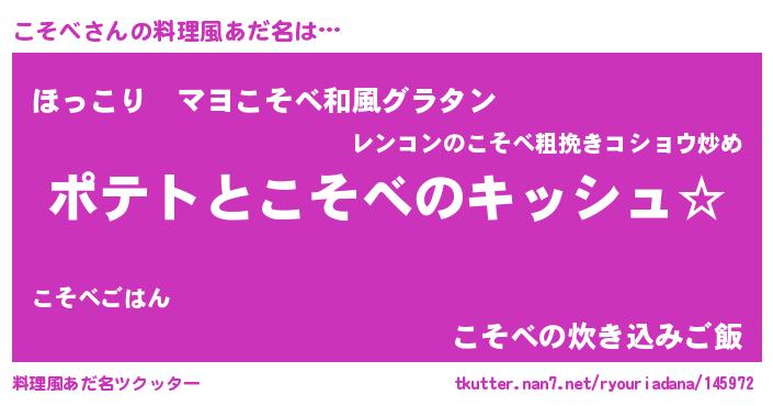 | 意味不明あだ名 | 『とにかく怪しいこそべ』『自称こそべ』 |