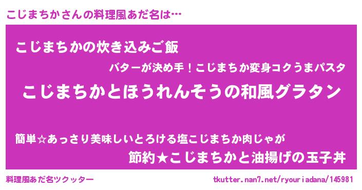 | 女子向けラノベタイトル風あだ名 | 『こじまちかの玉の輿計画!』 |