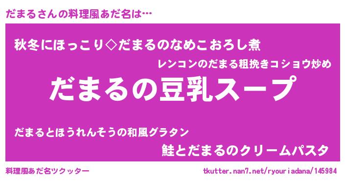 | 意味不明あだ名 | 『とにかく怪しいだまる』『自称だまる』 |