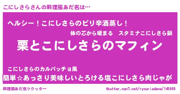 | ヘコむあだ名 | 『こにしさら(遠い目)』『なまこ酢』 |