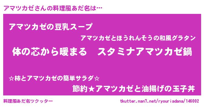 | 欧米人風あだ名 | 『アマツカゼクリステル』 |