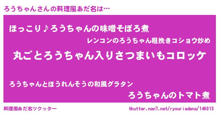 | 女子向けラノベタイトル風あだ名 | 『乙女ゲームの破滅フラグしかない悪役ろうちゃんに転生してしまった…』 |