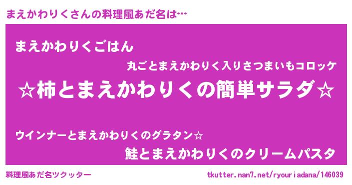 | 胡散臭い通販商品みたいなあだ名 | 『お金では代えられないマグネット磁石…その名も「まえかわりく」』 |