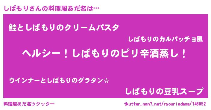 | 男性向けラノベタイトル風あだ名 | 『Re:しばもりから始める異世界生活』 |