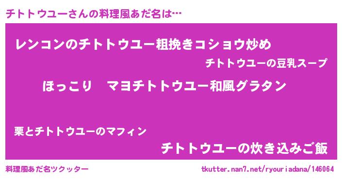 | 男性向けラノベタイトル風あだ名 | 『この素晴らしい世界にチトトウユーを!』 |