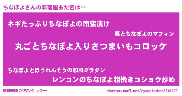 | 意味不明あだ名 | 『住所不定無職ちなぽよ(85歳)』 |