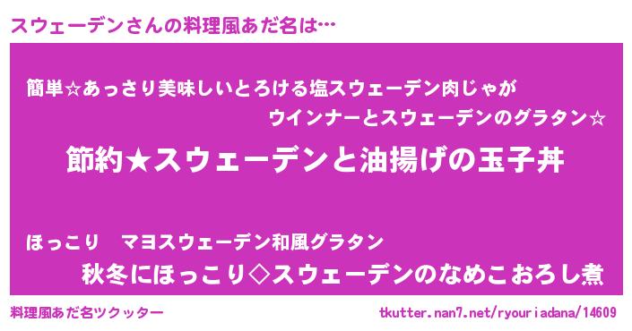 | 男性向けラノベタイトル風あだ名 | 『スウェーデンアートオンライン』 |