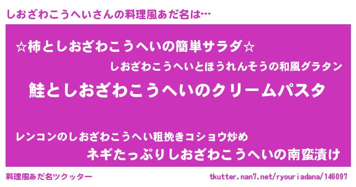 | 男性向けラノベタイトル風あだ名 | 『ノーゲーム・ノーシオザワコウヘイ』 |