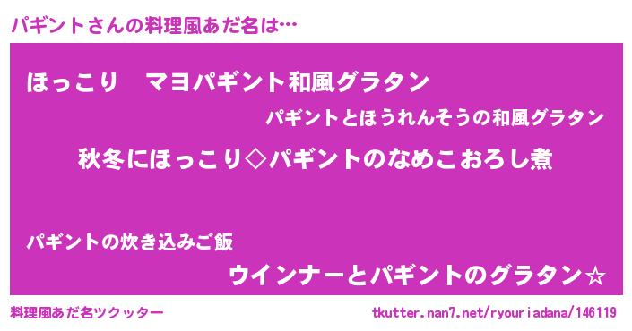 | 男性向けラノベタイトル風あだ名 | 『パギントに滅ぼされるだけの簡単なお仕事です』 |