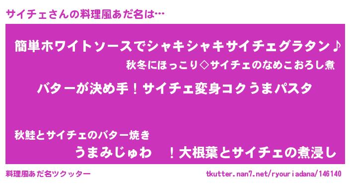 | 女子向けラノベタイトル風あだ名 | 『サイチェ恋絵巻』『サイチェ様がみてる』 |