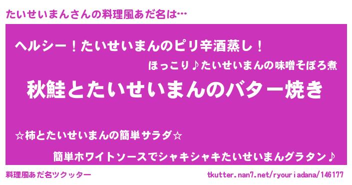 | ヘコむあだ名 | 『たいせいまん(苦笑)』『たいっ子』 |
