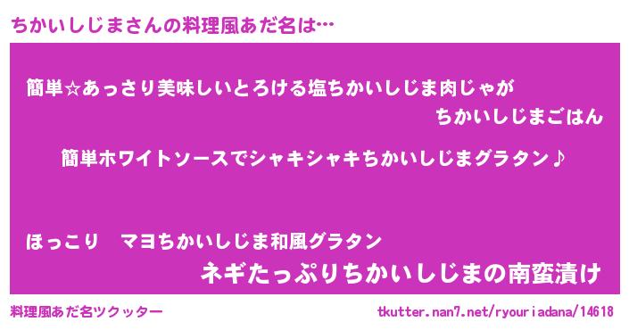 | 女子向けラノベタイトル風あだ名 | 『ちかいしじま様がみてる』 |