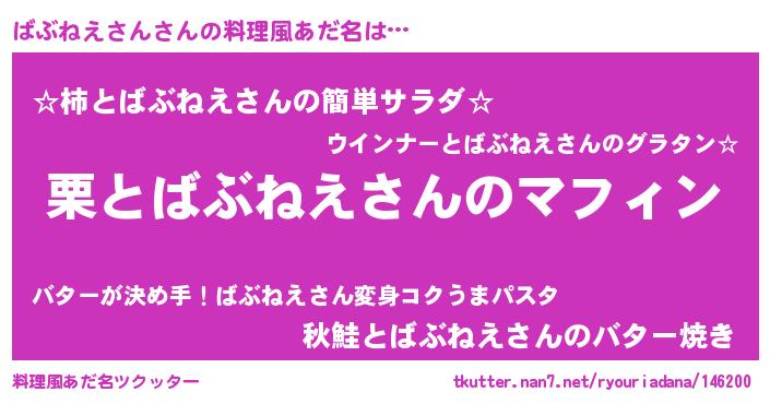 | ヒーロー風カッコイイあだ名 | 『ネオバブネエサン』『幻影騎士バブ』 |