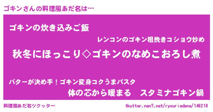 | 男性向けラノベタイトル風あだ名 | 『ゴキンに滅ぼされるだけの簡単なお仕事です』 |
