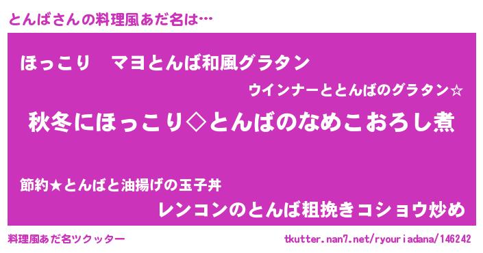 | 意味不明あだ名 | 『住所不定無職とんば(1歳)』『自称とんば』 |