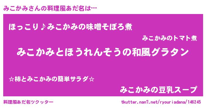 | 女子向けラノベタイトル風あだ名 | 『みこかみの玉の輿計画!』 |