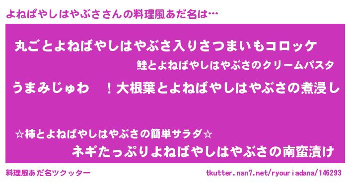 | 欧米人風あだ名 | 『よねばやしはやぶさクリステル』 |