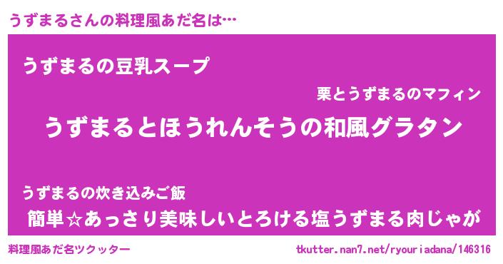 | 女子向けラノベタイトル風あだ名 | 『うずまるの玉の輿計画!』 |
