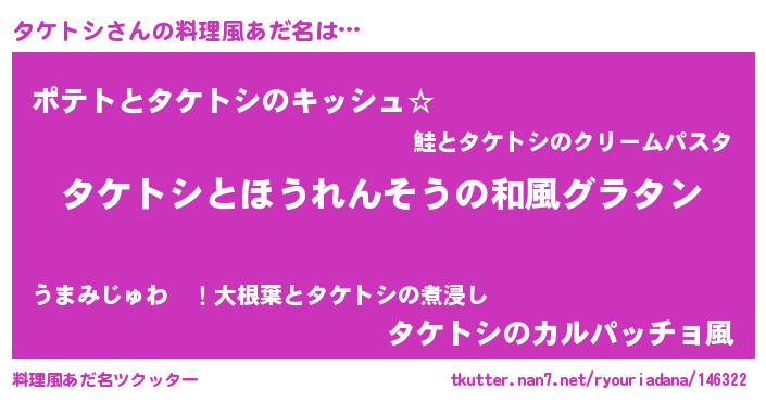 | 可愛いあだ名 | 『タケぷりん』『タっケぃー』 |