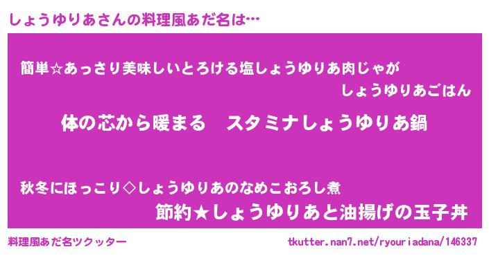 | 意味不明あだ名 | 『しょうゆりあフォーエバー』 |